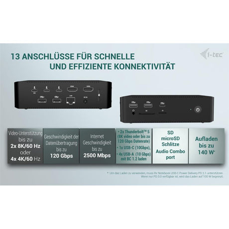 Begrenzt verfügbar (8 Stück)69,79 €Grundpreis /Nicht verfügbari-tec Thunderbolt5 Quattro Display Docking Station, 5x USB, 2.5 GLAN + Power Delivery 140W