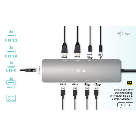 i-tec USB 3.0 / USB-C / Thunderbolt 3 Professional Dual 4K Display Docking Station Gen2 + PD 100W