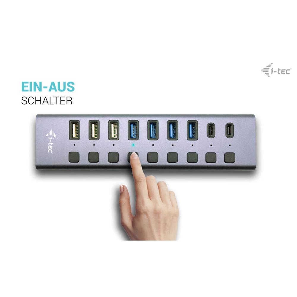 - i-tec USB-A/USB-C Charging HUB 9port mit LAN + Power Adapter 60 W