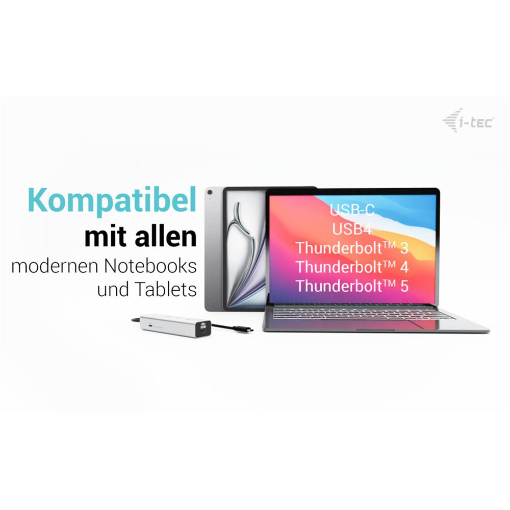 - 1x i-tec USB-C Charging Metal HUB 5port with USB-C video 8K + Power Delivery 85W