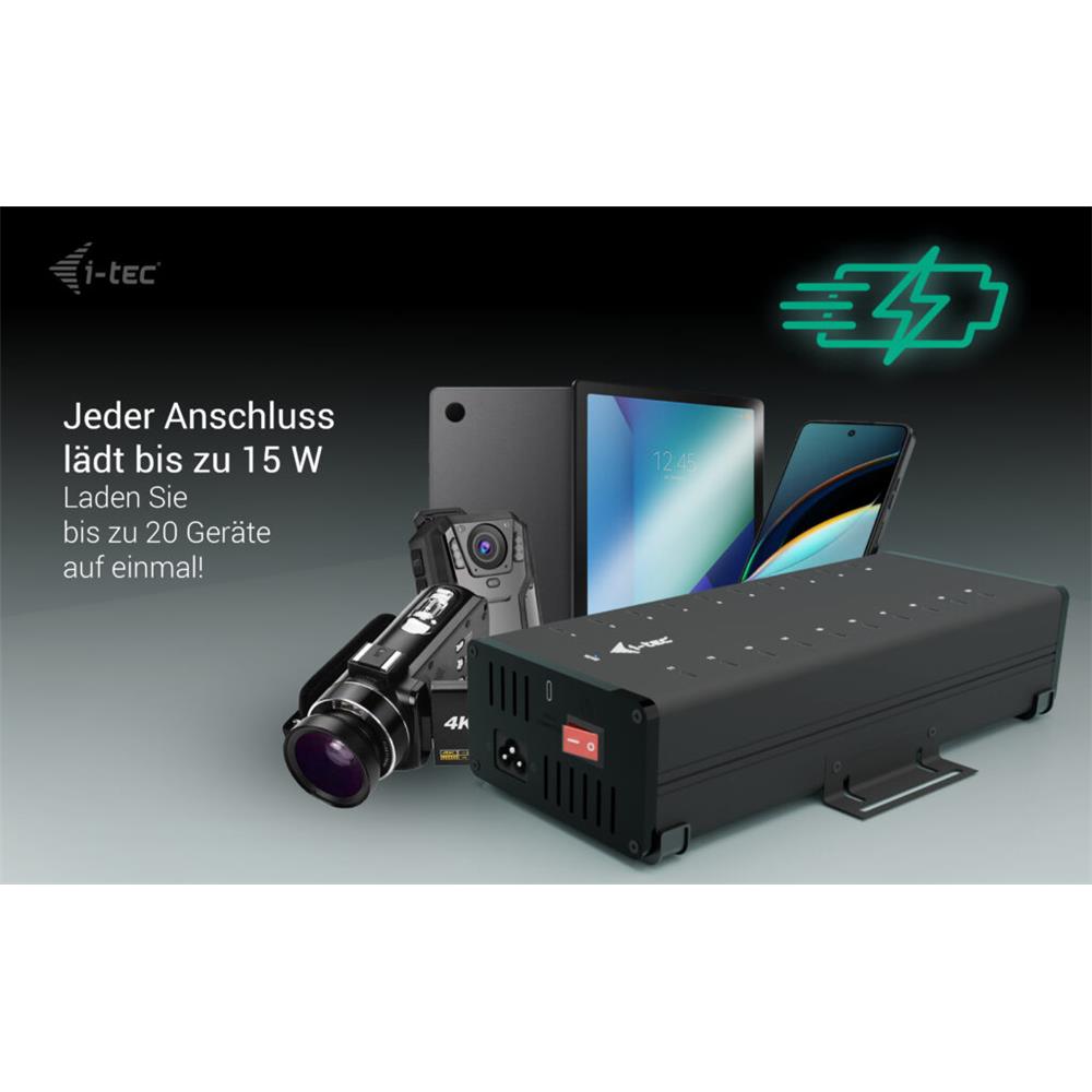 - 20x USB-C-Anschlüsse, die alle eine Ladeleistung von 15 W unterstützen