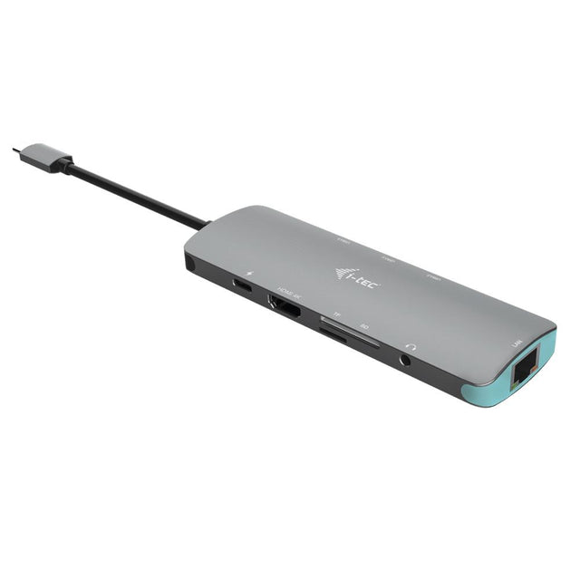 i-tec USB-C Metal Nano Docking Station – 1x HDMI 4K Ultra HD 3840×2160@30Hz, 1x SD Kartenlesegerät, 1x microSD Kartenlesegerät, 1x Ethernet GLAN RJ-45 port, 1x Combo audio jack, 3x USB 3.0 Port, 1x USB-C Power Delivery Port, kompatible mit Thunderbolt 3